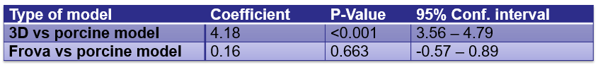 Table 2: Difference in force required to puncture the 3D model and the FROVA at the cricothyroid membrane,compared to the porcine trachea, adjusting for operator and instrument effects.